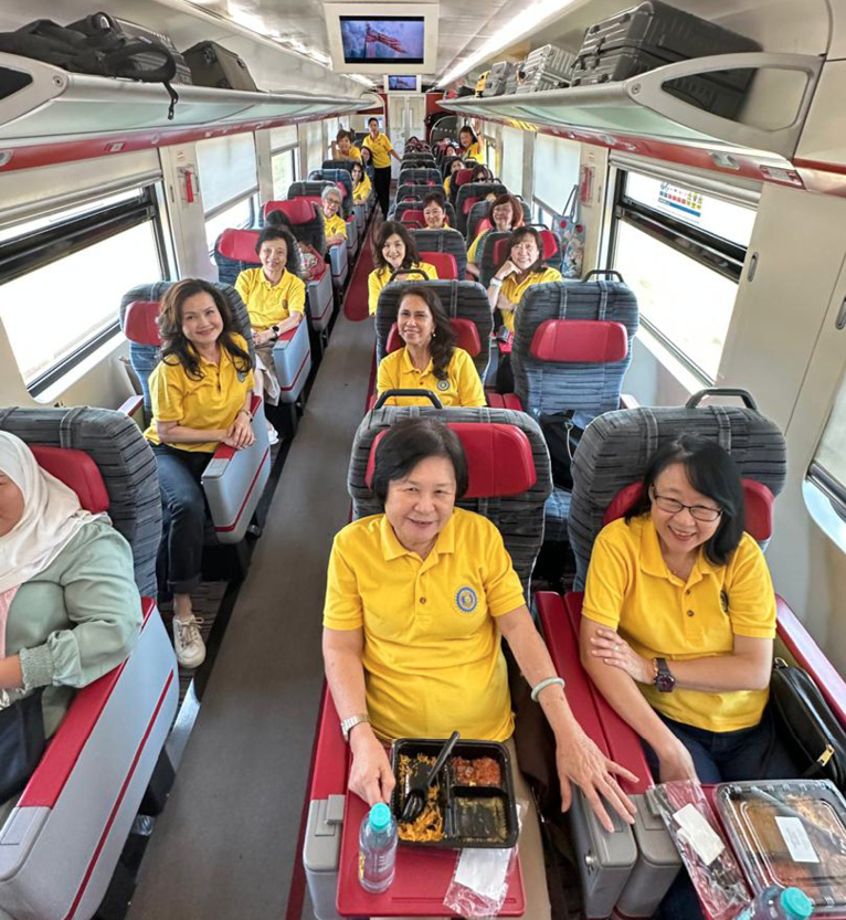 As the time came to bid farewell to Hatyai, the ladies boarded the bus back to Padang Besar, their bags overflowing with souvenirs and their hearts overflowing with memories. The final leg of the journey was a smooth ride on the electric train service (ETS) back to Kuala Lumpur. The IWCKL ladies returned home, not just with full bags and potentially a few extra pounds from all the delicious food, but with a renewed sense of sisterhood and a treasure trove of stories to share. IWCKL members extend their heartfelt gratitude to the Inner Wheel Club of Alor Star, especially President Dr. Rosni, Padmini, Aini, and Shan, for their warm hospitality and for making the Hatyai adventure truly unforgettable.