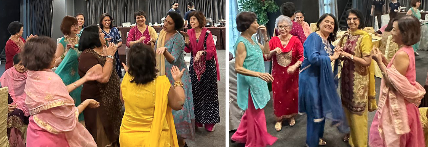 As the colourful spectacle subsided, the aroma of delicious food filled the air. Lunch commenced, accompanied by the melodious voice of guest artist Ms Balwinder, who serenaded the gathering throughout the meal. Laughter and conversation flowed freely, punctuated by moments of thrilling anticipation as lucky draws were announced. Winners were not just handed their prizes; they had to earn them with a celebratory dance, much to the amusement and cheers of their fellow members!