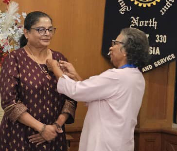 A significant and heartwarming part of the AGM was the induction ceremony for two new members, Shanty M and Devi. In a graceful ceremony, our esteemed President, Sarojini Bhai, personally pinned the Inner Wheel brooches onto Shanty and Devi, officially welcoming them into our vibrant club. This symbolic gesture was met with warm applause and smiles, underscoring the close-knit and supportive nature of our Inner Wheel family.