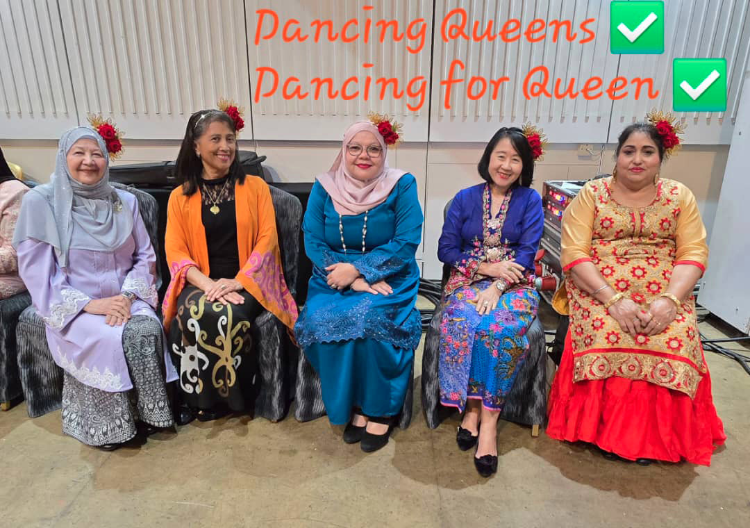 The Inner Wheel Club of Kuala Lumpur,an affiliate of NCWO was honoured to be invited to perform a dance item during the High -Tea. To the upbeat ,catchy music of “Tarian Lemak Manis”, the troupe of 5 ladies,helmed by our NCWO rep, YM Tunku Maziah,and choreographed by her daughter,Pn Anita Kushairy, resolved to do their best and make the club proud . Despite the short notice and only 5 practices, we were relieved everything went like clockwork. The organisers too saw it fit to have a short caption of IWCKL emblazoned on the event wall backdrop.