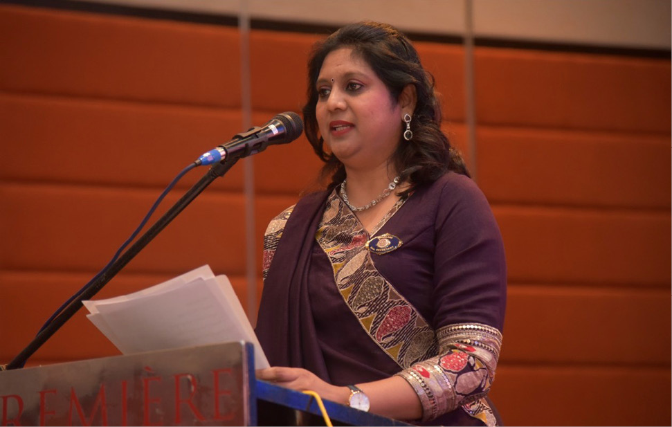 In her inaugural address, President Lalitha Veerappan shared a brief biography and her enthusiasm to serve—combining excitement with a clear sense of responsibility. She outlined key community projects for 2025–2026, introduced her new committee, and acknowledged the steadfast support of club members and her family.