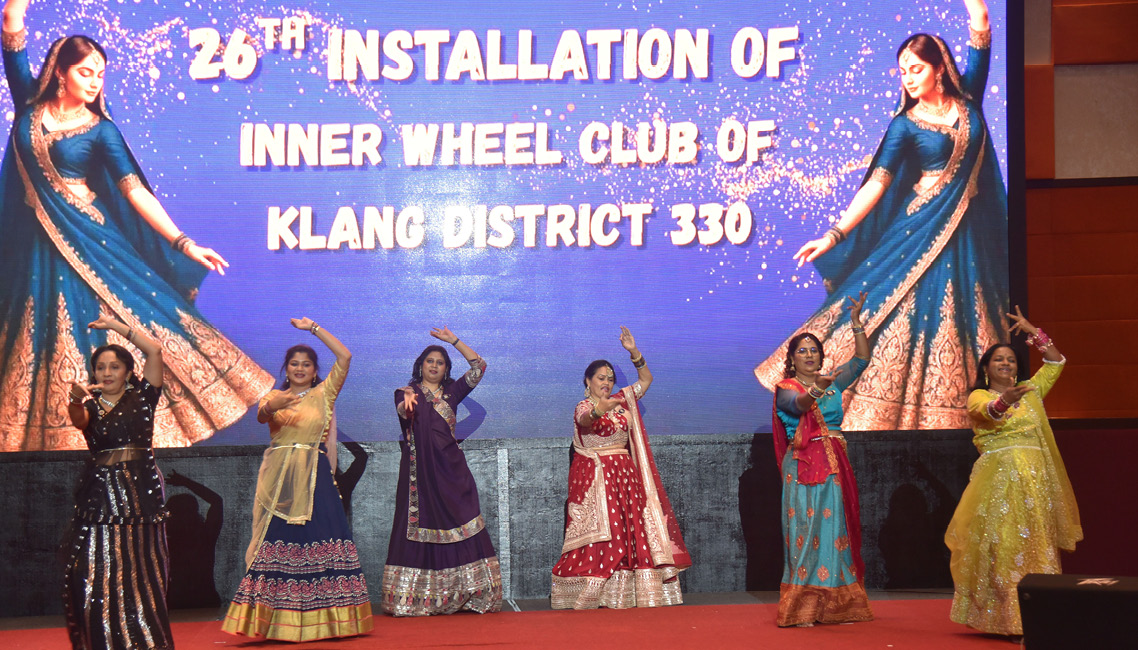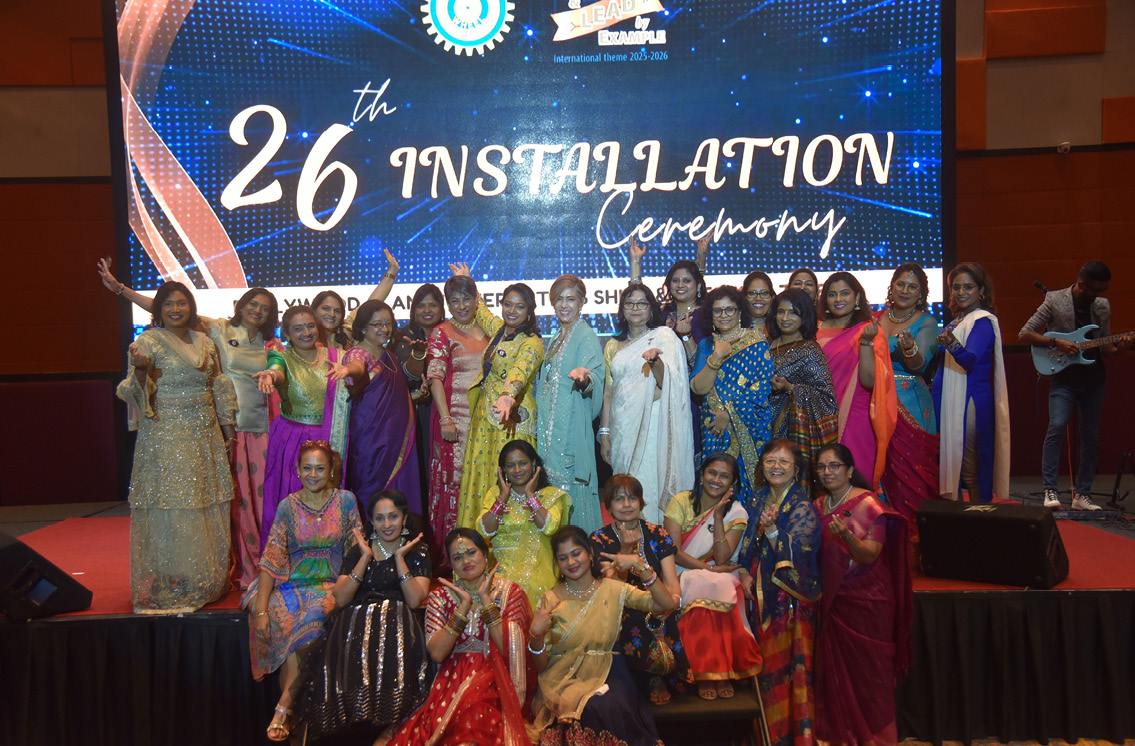 The Inner Wheel Club of Klang (IWC Klang) marked its 26th Installation with a vibrant “Bollywood Night” at Premiere Hotel, Ballroom II. Sisters from clubs across the district, together with Rotarians and invited guests, joined IWC Klang members to welcome Ms Lalitha Veerappan as President for 2025–2026, together with her seven-member committee. Fourteen tables filled the ballroom as a live band set the celebratory tone.