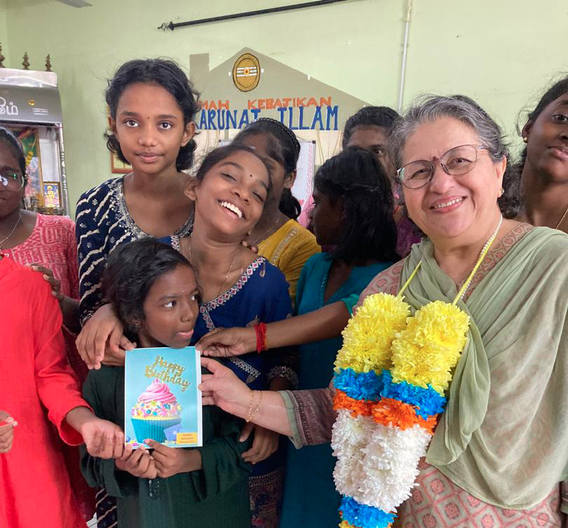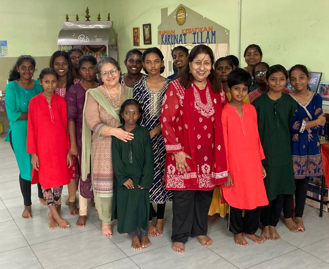 President Rajani and Past President Indira with the children from the Karuna Illam