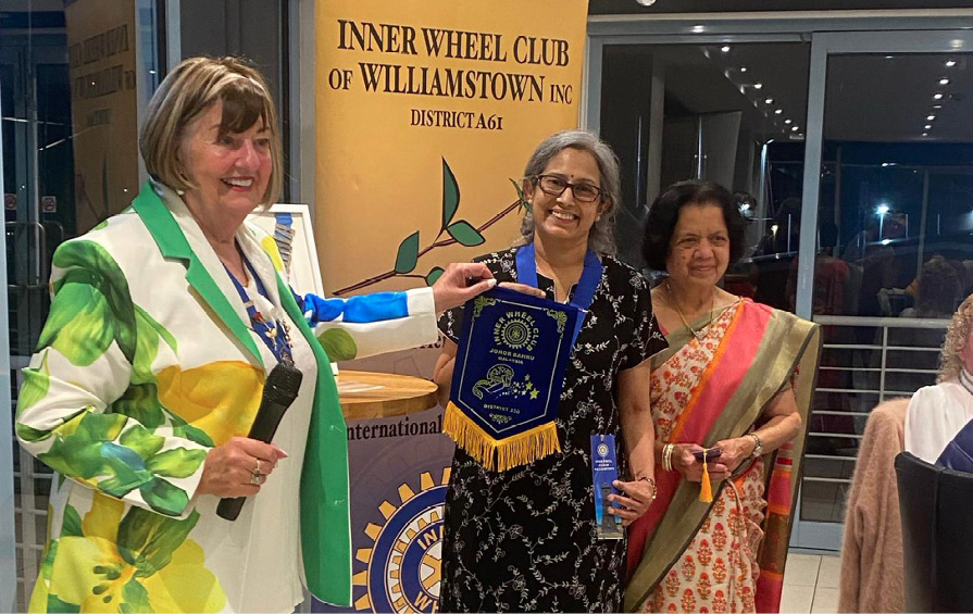 During President Santhi’s visit to Melbourne, she had the opportunity to enjoy a warm and meaningful fellowship with the members of IWC Williamstown. Their President, Valmai Moran, graciously arranged a dinner gathering together with their Vice-President, Sandra Higgins, and an impressive number of members—despite it being the winter holiday season in Williamstown.
